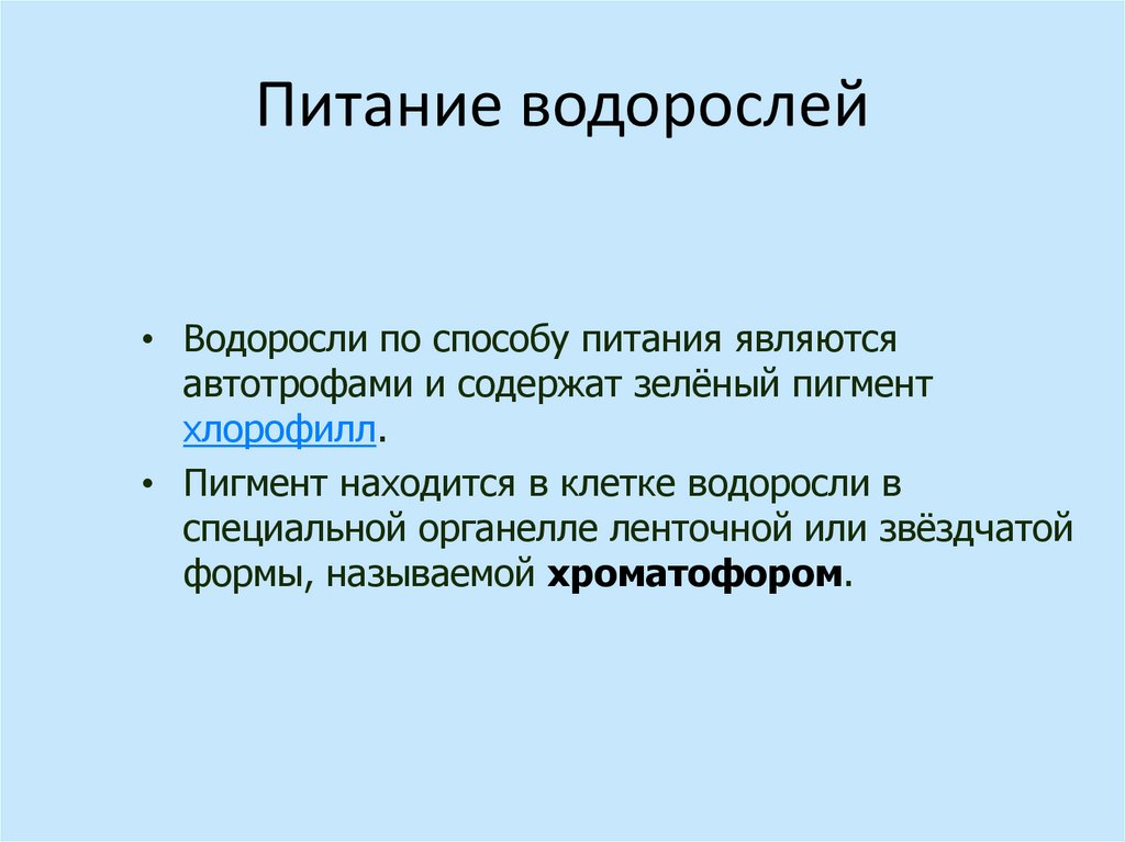 Питание водорослей• Водоросли по способу питания являются