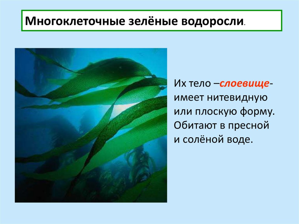 Многоклеточные зелёные водоросли.Их тело –слоевищеимеет нитевидную
