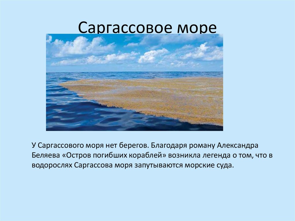 Саргассовое мореУ Саргассового моря нет берегов. Благодаря роману Александра