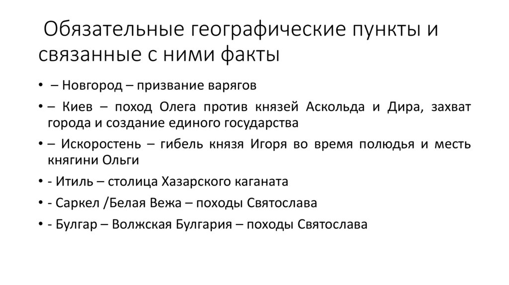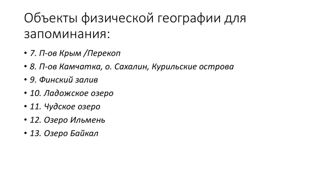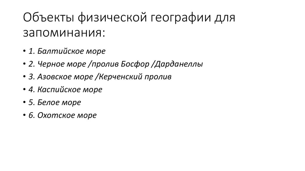 • моря, реки, острова и т.д. – это минимальный «пакет», который