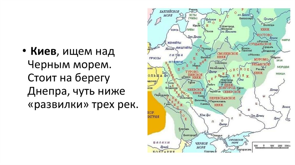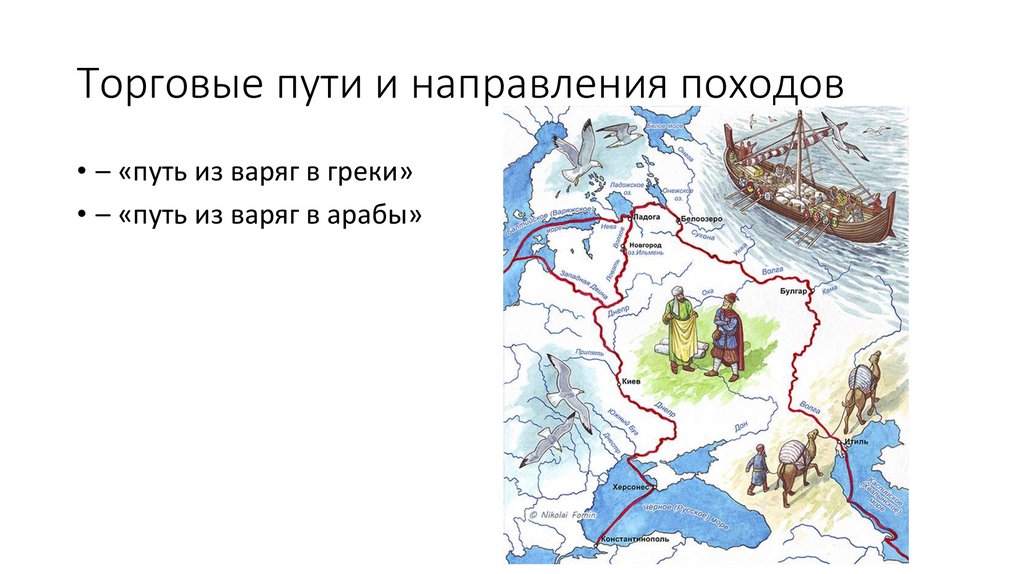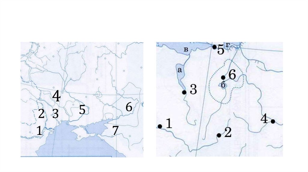 1) На схеме обозначены водные объекты, по которым проходила часть древнего