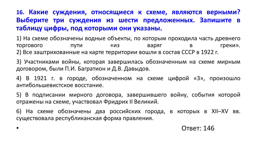 16. Какие суждения, относящиеся к схеме, являются верными?Выберите три суждения из шести предложенных. Запишите в