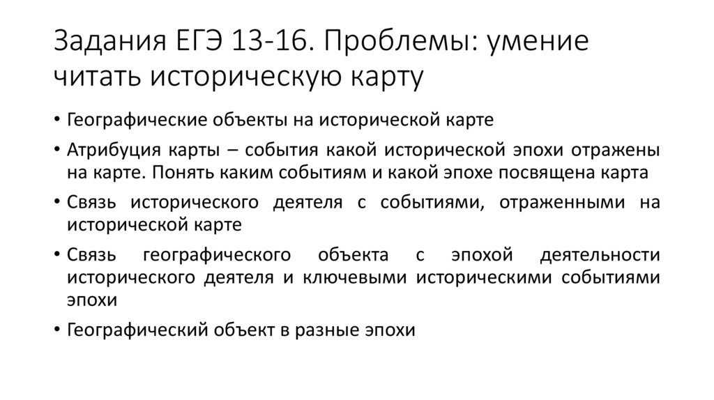 Задания ЕГЭ 13-16. Проблемы: умениечитать историческую карту