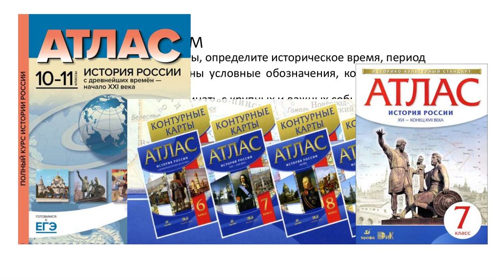 Работа с атласом1. Прочитайте название карты, определите историческое время, период