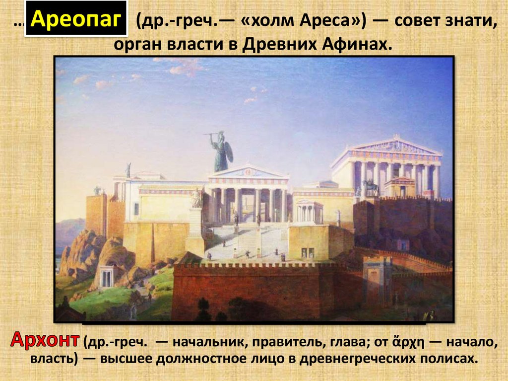 …………………..Ареопаг (др.-греч.— «холм Ареса») — совет знати,