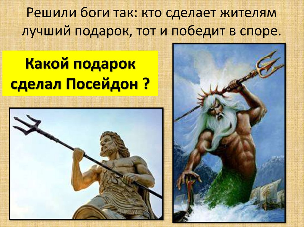Решили боги так: кто сделает жителямлучший подарок, тот и победит в споре.