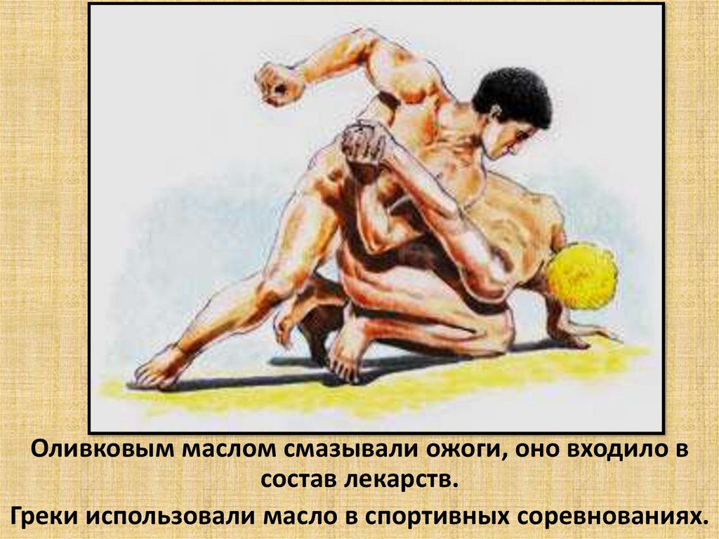 Оливковым маслом смазывали ожоги, оно входило всостав лекарств.