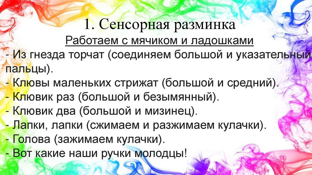 1. Сенсорная разминкаРаботаем с мячиком и ладошками