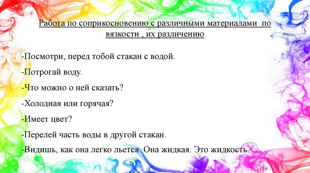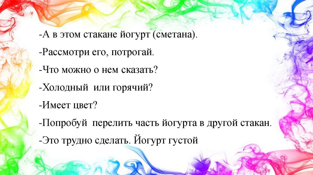 -А в этом стакане йогурт (сметана).-Рассмотри его, потрогай.