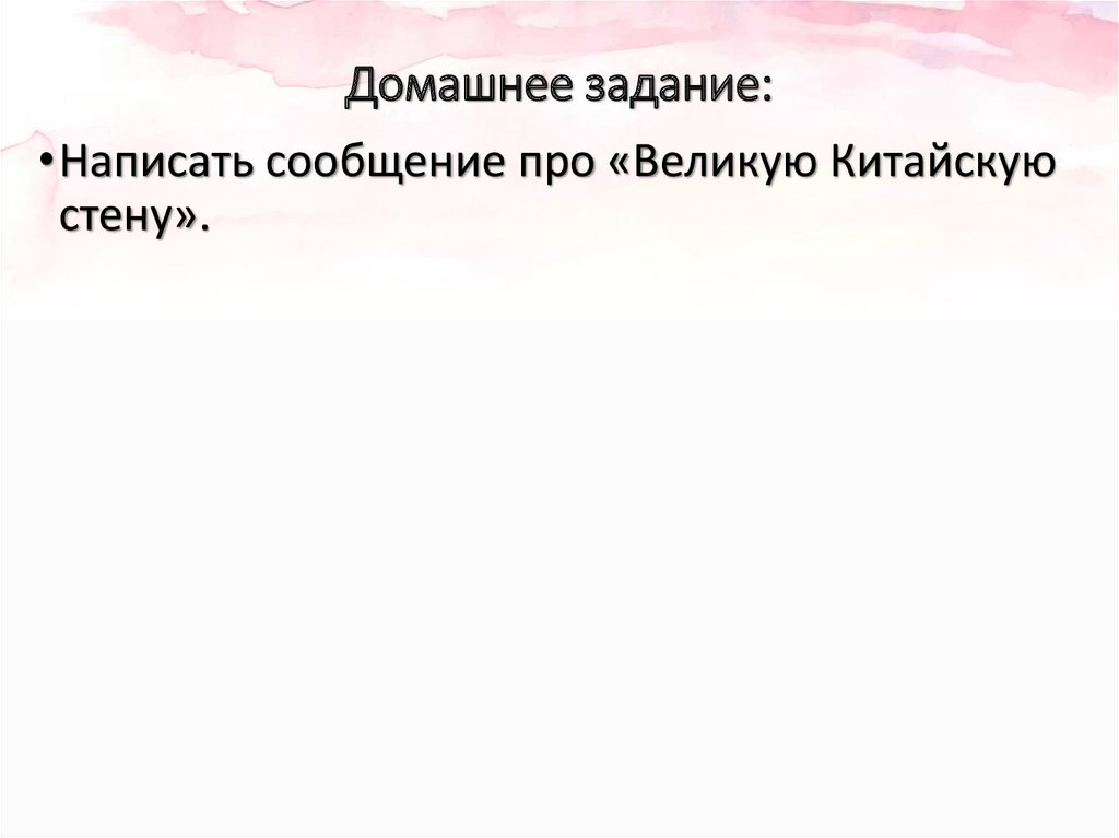 Домашнее задание:•Написать сообщение про «Великую Китайскую