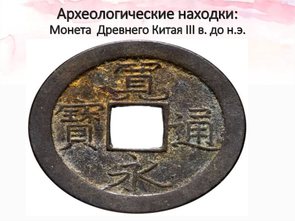 Археологические находки:Монета Древнего Китая III в. до н.э.