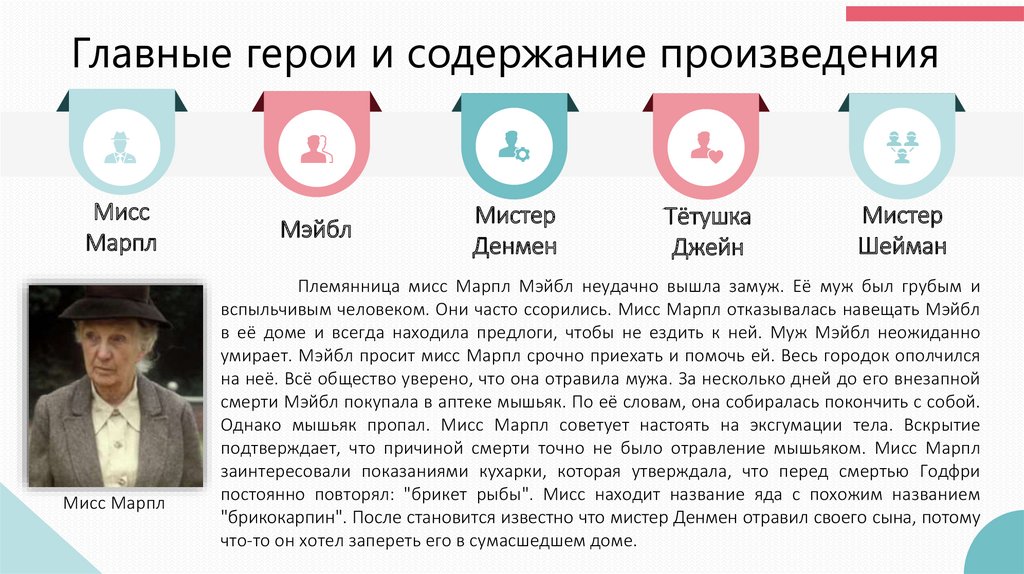 вспыльчивым человеком. Они часто ссорились. Мисс Марпл отказывалась навещать Мэйбл