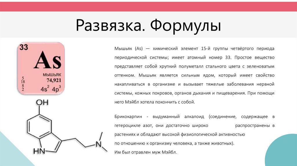 Развязка. ФормулыМышьяк (As) — химический элемент 15-й группы четвёртого периода
