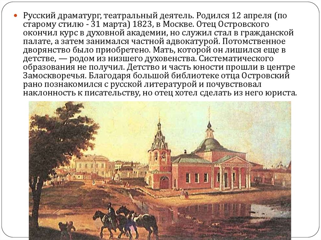 Замоскворечья. Благодаря большой библиотеке отца Островский