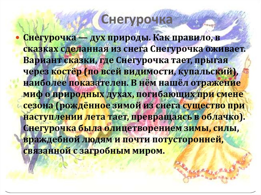 СнегурочкаСнегурочка — дух природы. Как правило, в