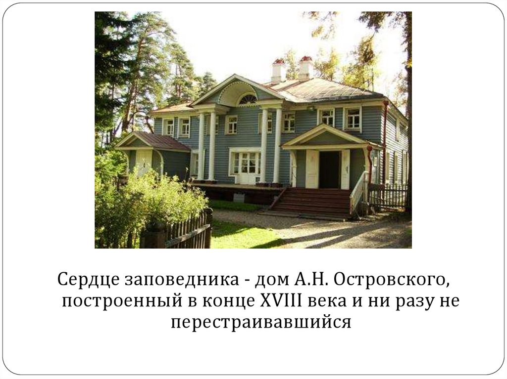 Сердце заповедника - дом А.Н. Островского,построенный в конце XVIII века и ни разу не