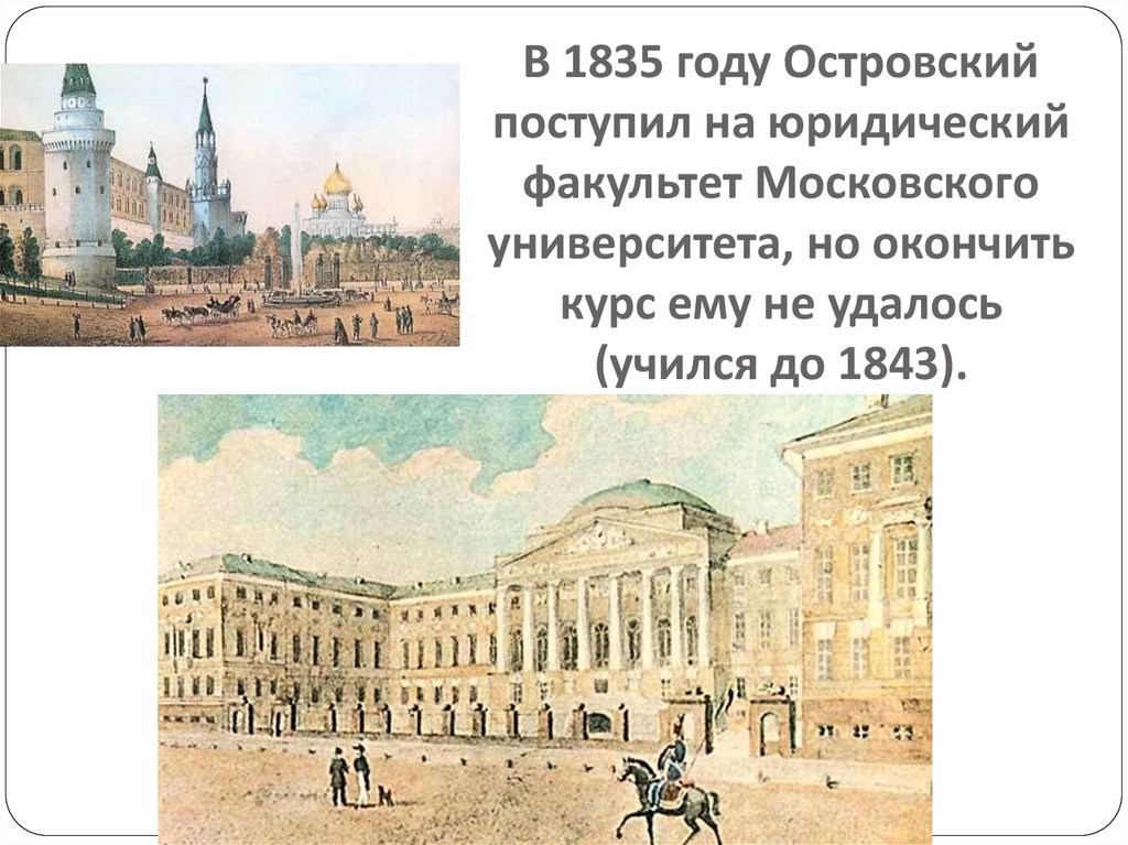 В 1835 году Островскийпоступил на юридический