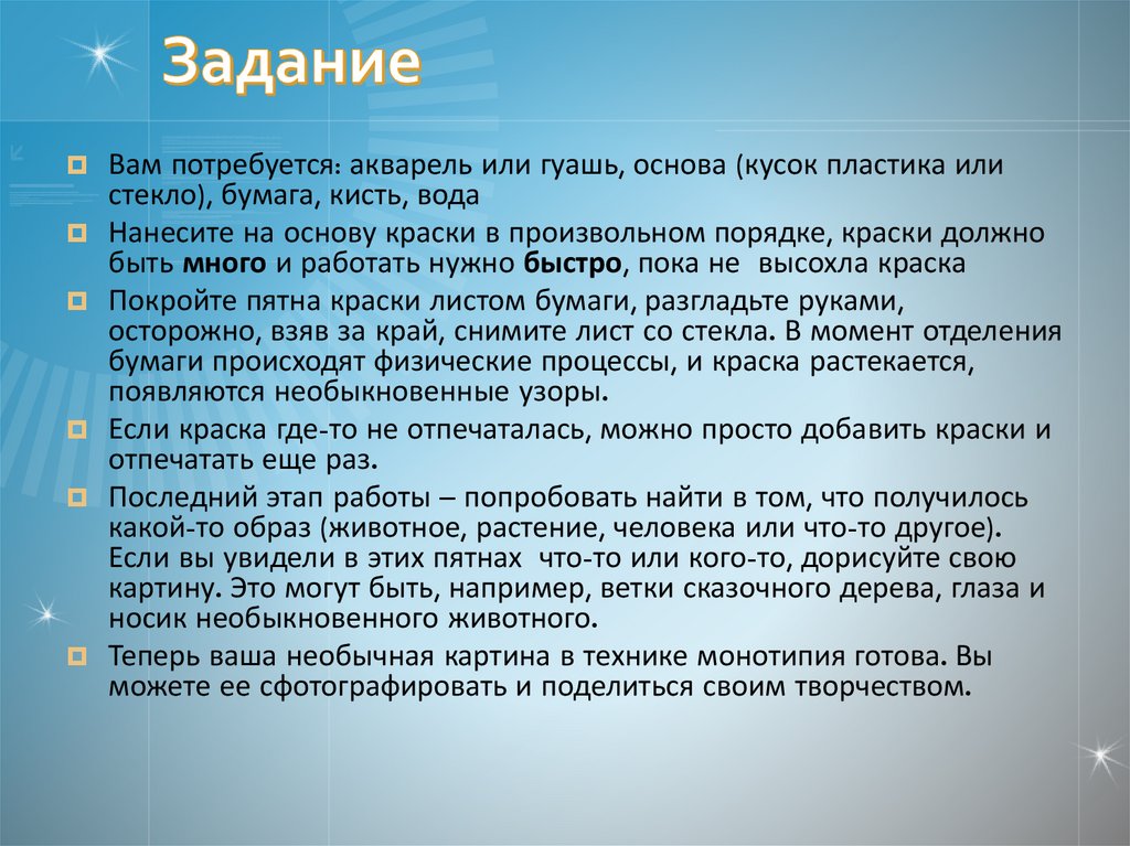 Вам потребуется: акварель или гуашь, основа (кусок пластика илистекло), бумага, кисть, вода
