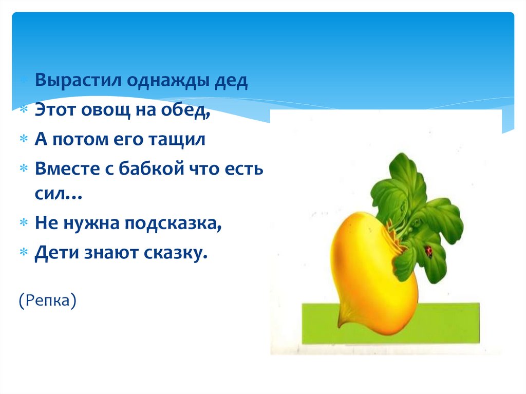 Вырастил однажды дедЭтот овощ на обед,