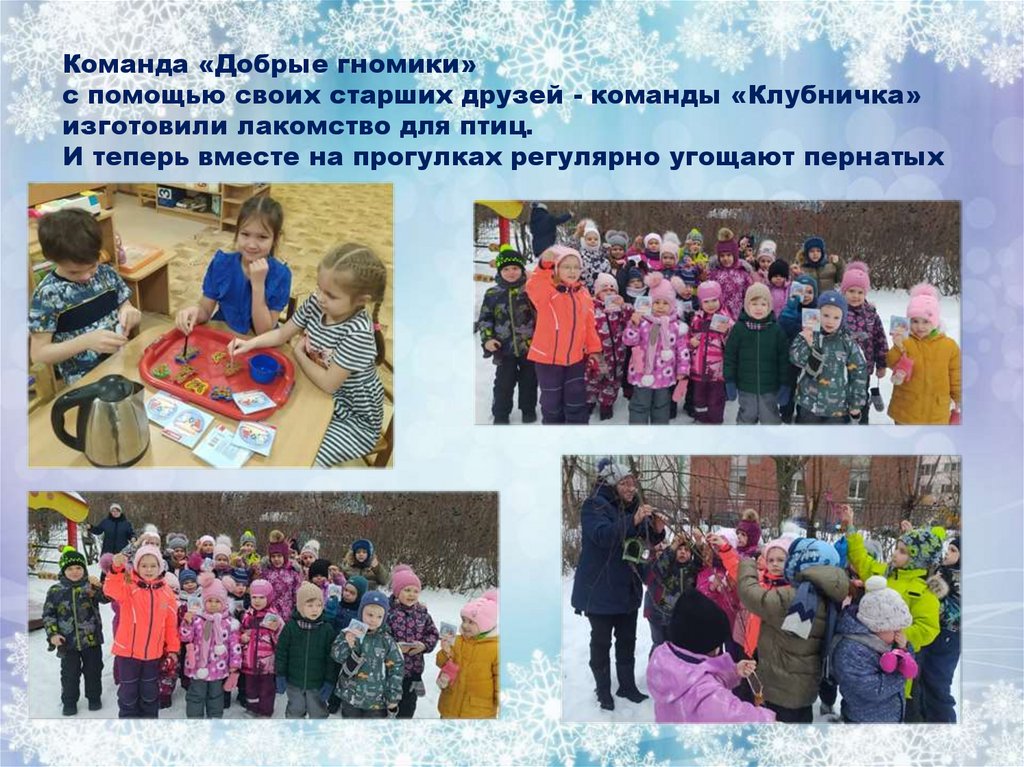 Команда «Добрые гномики»с помощью своих старших друзей - команды «Клубничка»