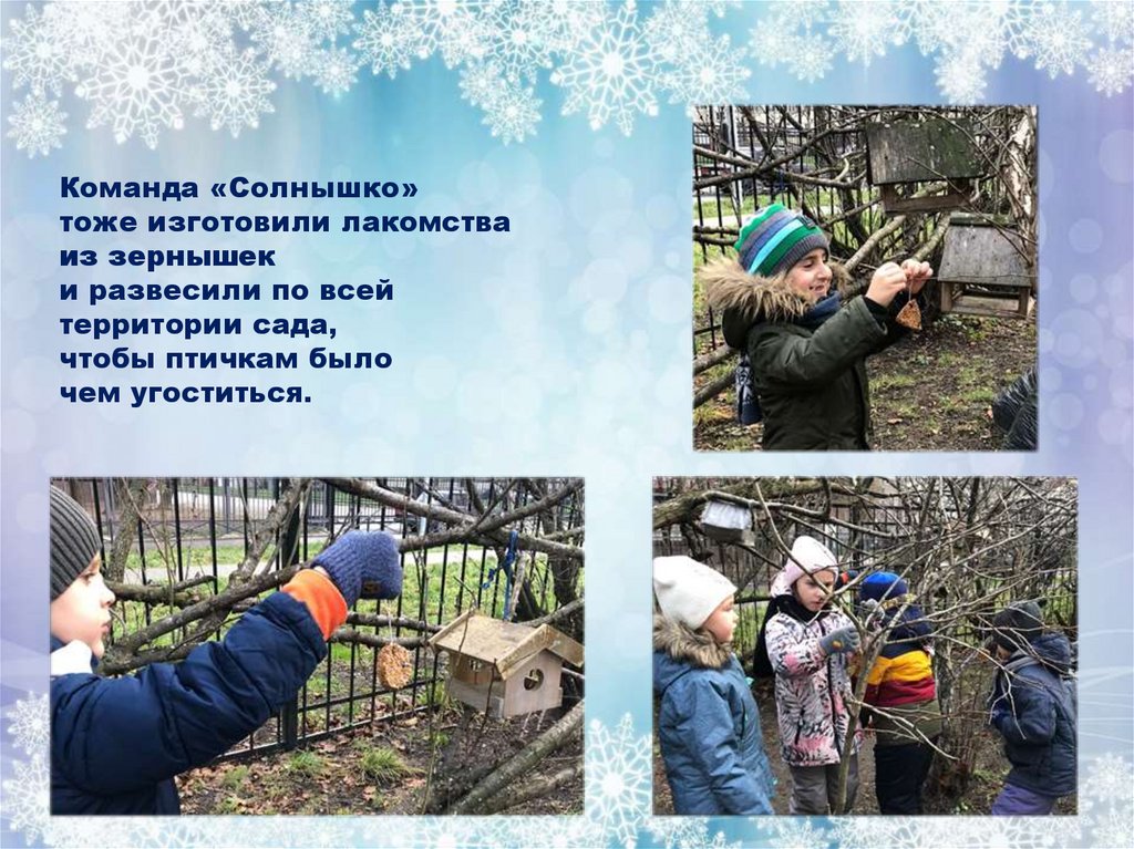 - Развесили угощение в кормушках