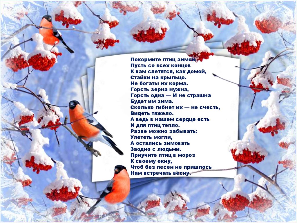 Покормите птиц зимой.Пусть со всех концов