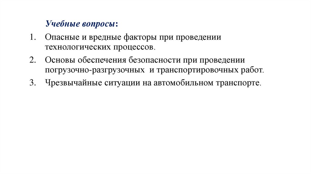 Учебные вопросы:1. Опасные и вредные факторы при проведении