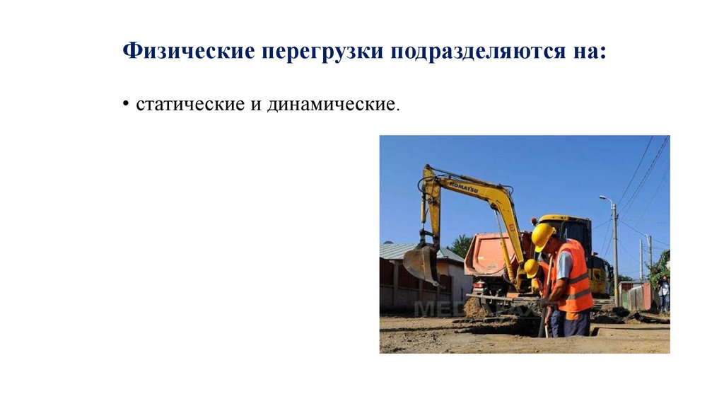 Физические перегрузки подразделяются на:• статические и динамические.