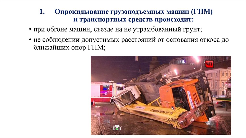 Опрокидывание грузоподъемных машин (ГПМ)и транспортных средств происходит:
