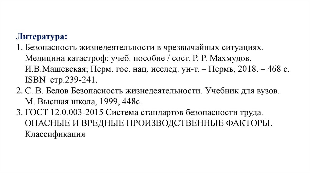 Литература:1. Безопасность жизнедеятельности в чрезвычайных ситуациях.
