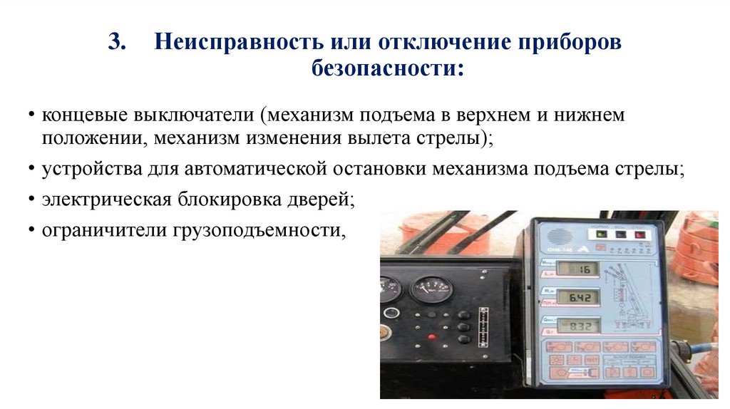 опрокидывания кранов при перегрузке,