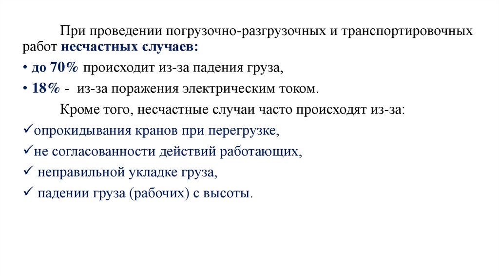• до 70% происходит из-за падения груза,
