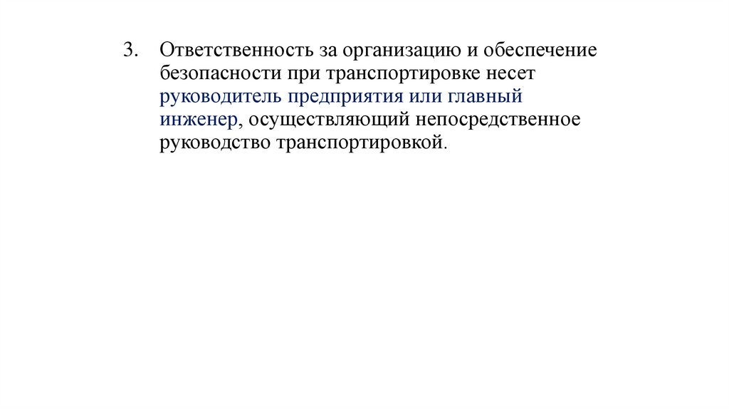 3. Ответственность за организацию и обеспечениебезопасности при транспортировке несет