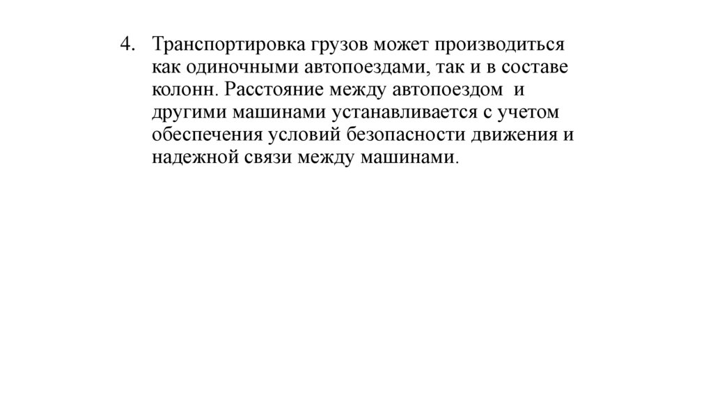 4. Транспортировка грузов может производитьсякак одиночными автопоездами, так и в составе
