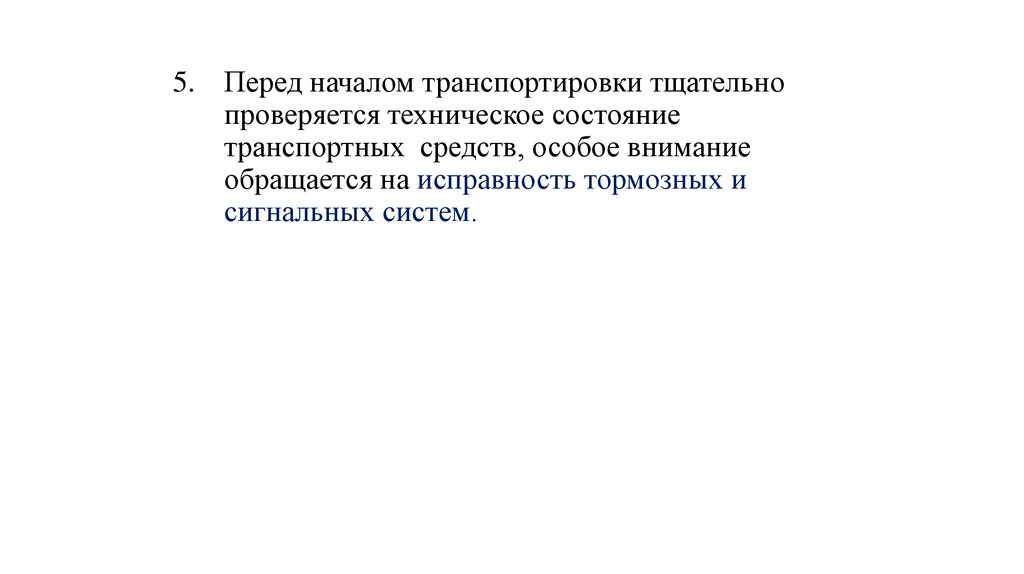 5. Перед началом транспортировки тщательнопроверяется техническое состояние