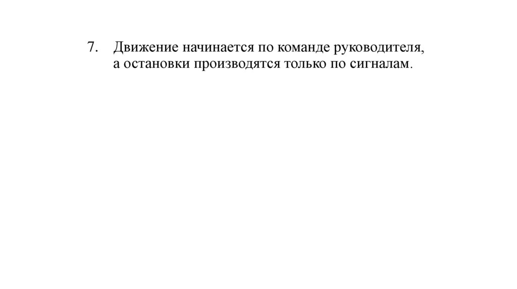 7. Движение начинается по команде руководителя,а остановки производятся только по сигналам.