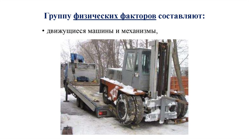 Группу физических факторов составляют:• движущиеся машины и механизмы,