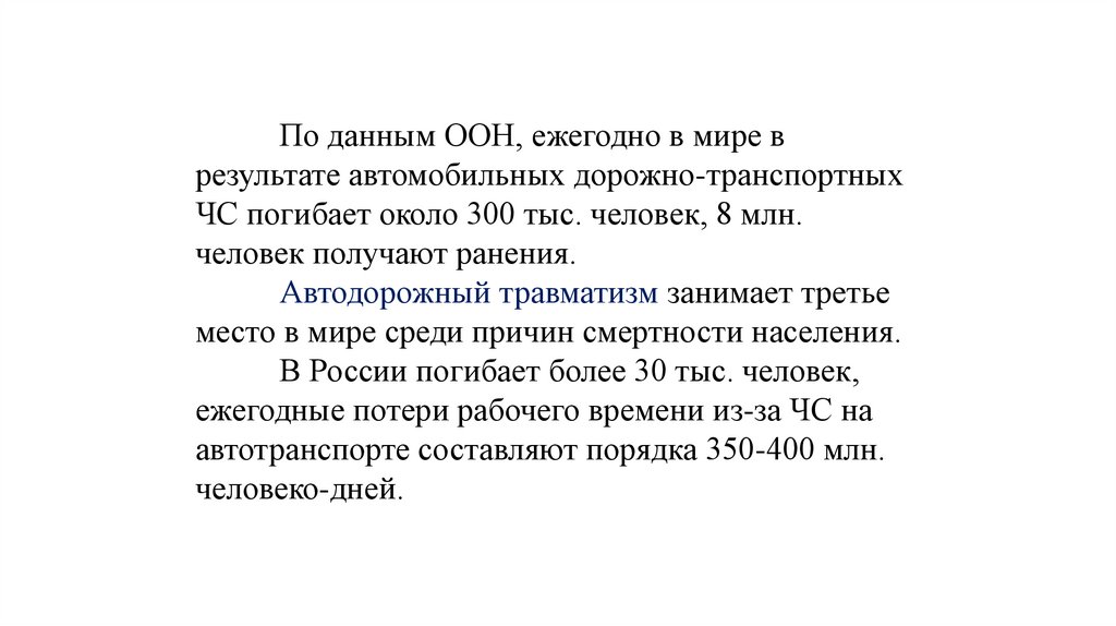 По данным ООН, ежегодно в мире врезультате автомобильных дорожно-транспортных