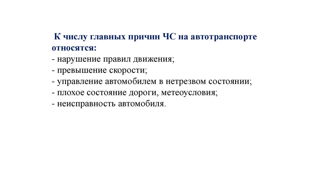 К числу главных причин ЧС на автотранспортеотносятся: