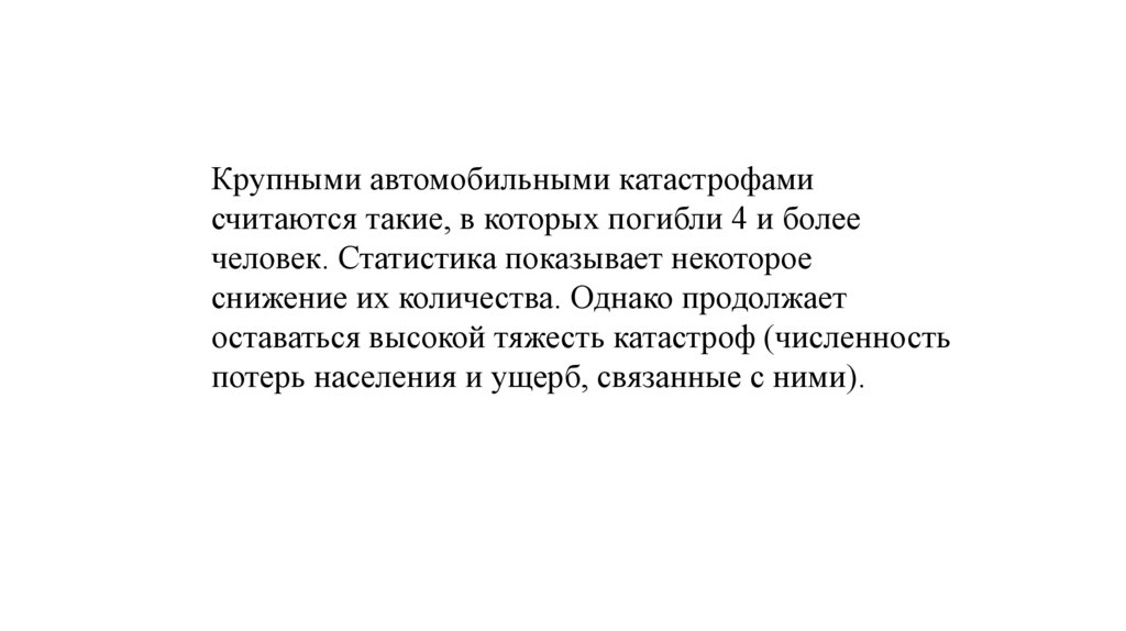 Крупными автомобильными катастрофамисчитаются такие, в которых погибли 4 и более