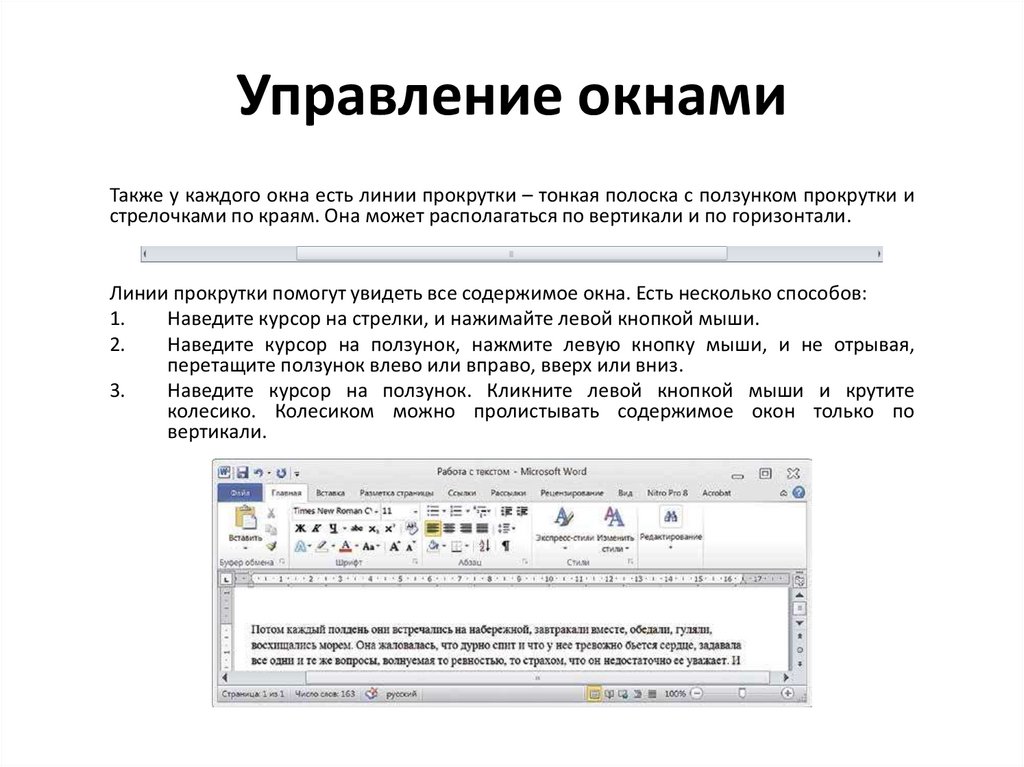 колесико. Колесиком можно пролистывать содержимое окон только по