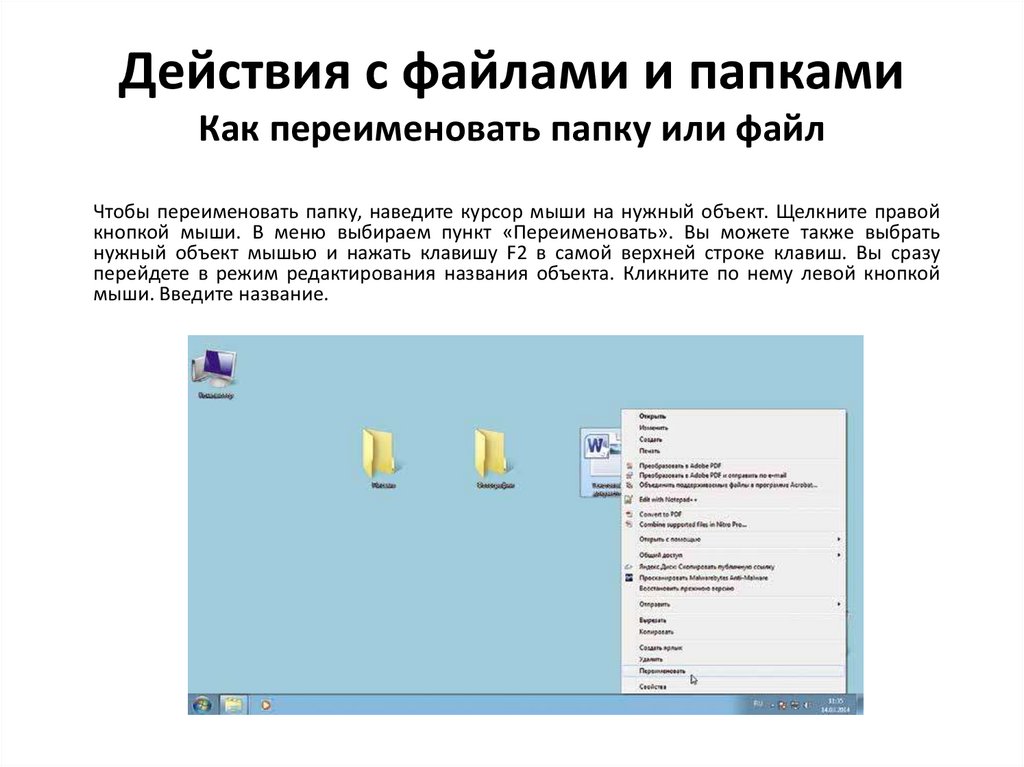 кнопкой мыши. В меню выбираем пункт «Переименовать». Вы можете также выбрать