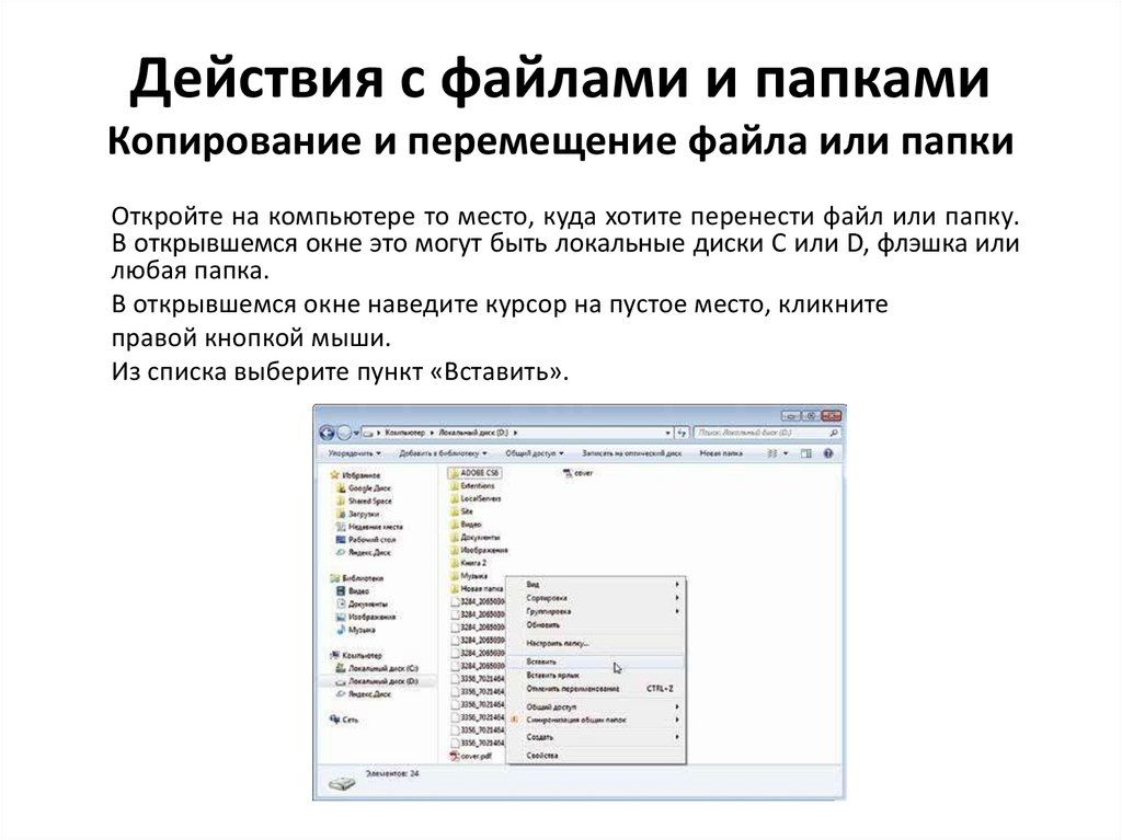 Действия с файлами и папкамиКопирование и перемещение файла или папки