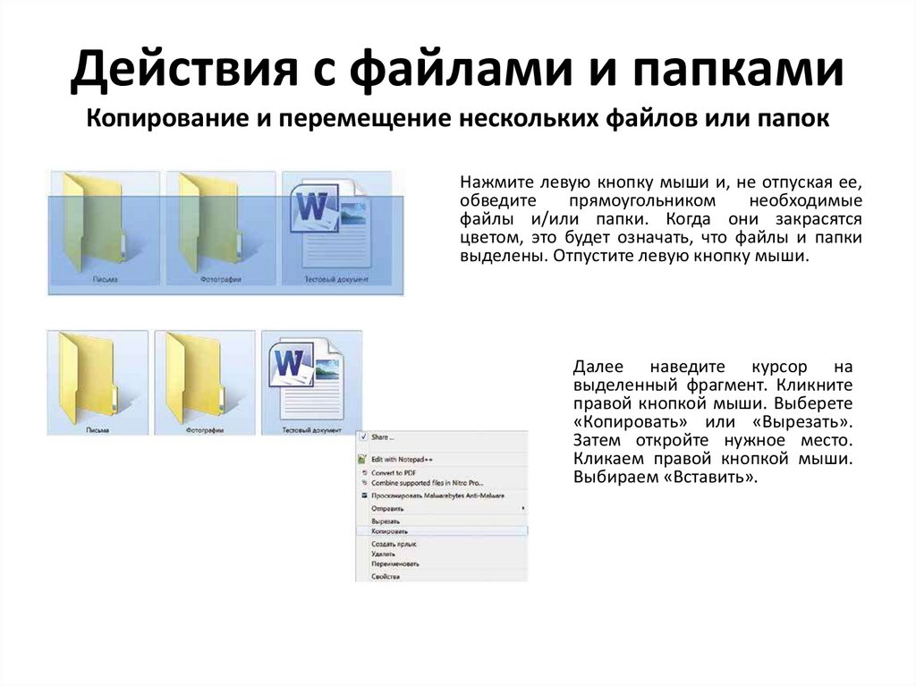 Действия с файлами и папкамиКопирование и перемещение нескольких файлов или папок