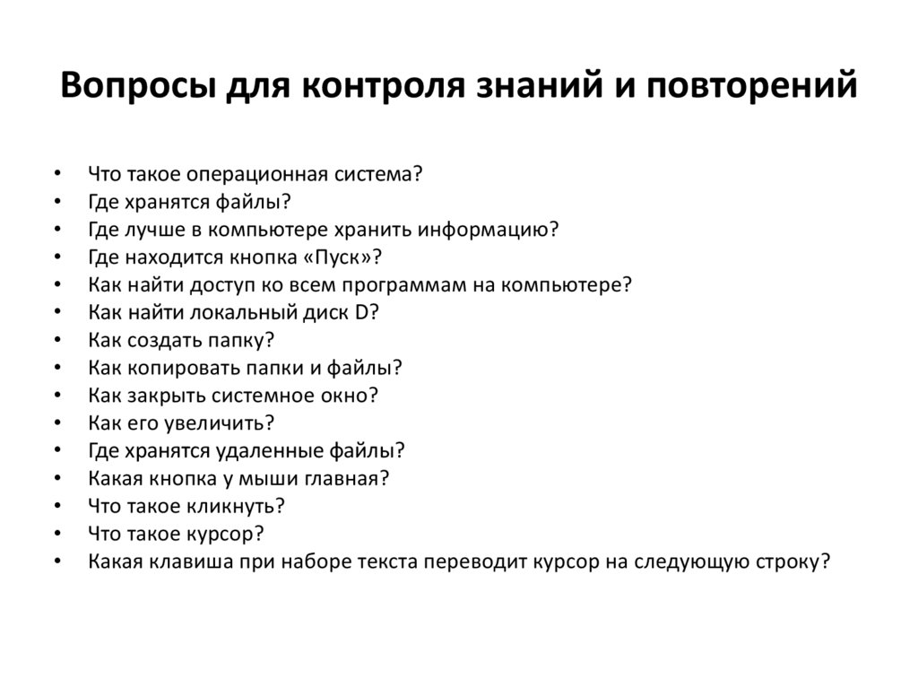 Вопросы для контроля знаний и повторенийЧто такое операционная система?