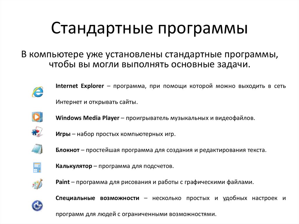 Стандартные программыВ компьютере уже установлены стандартные программы,