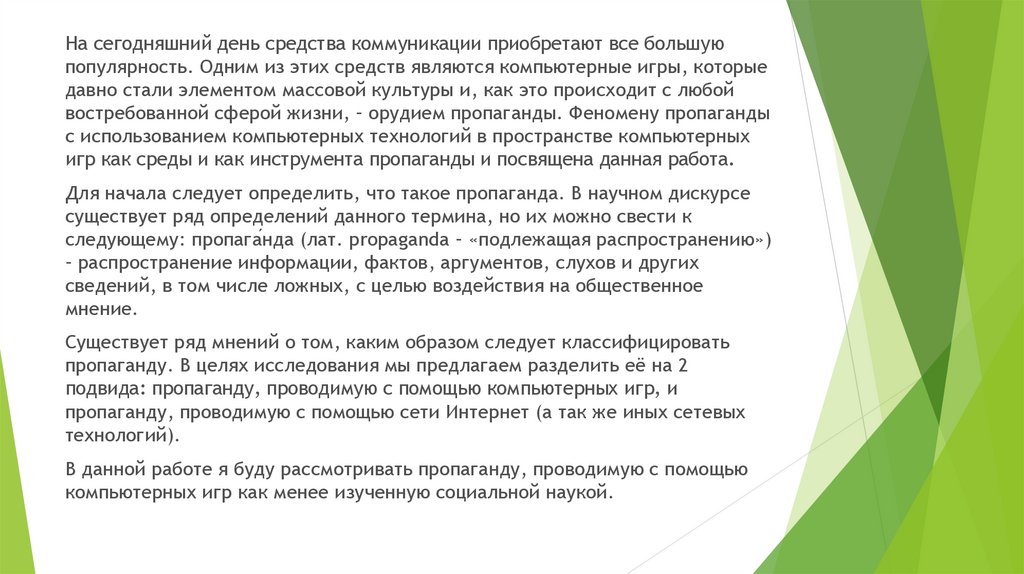 игр как среды и как инструмента пропаганды и посвящена данная работа.