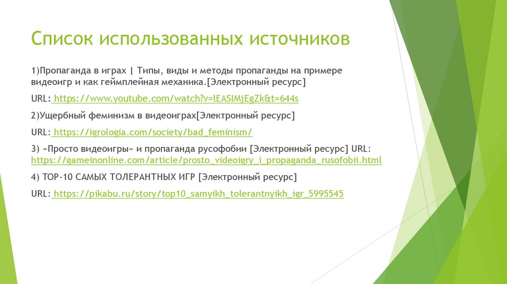 Список использованных источников1)Пропаганда в играх | Типы, виды и методы пропаганды на примере