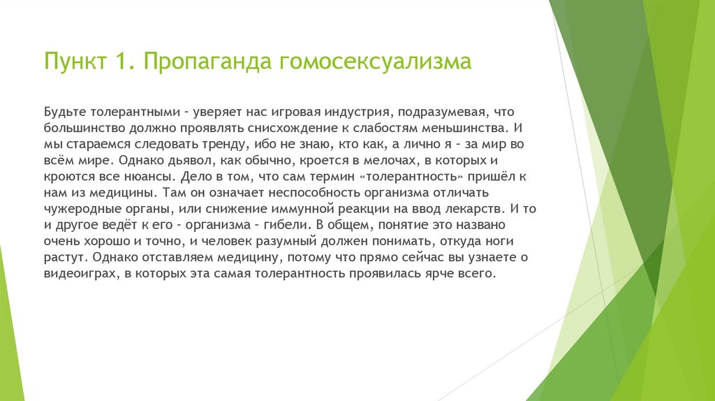 Пункт 1. Пропаганда гомосексуализмаБудьте толерантными – уверяет нас игровая индустрия, подразумевая, что