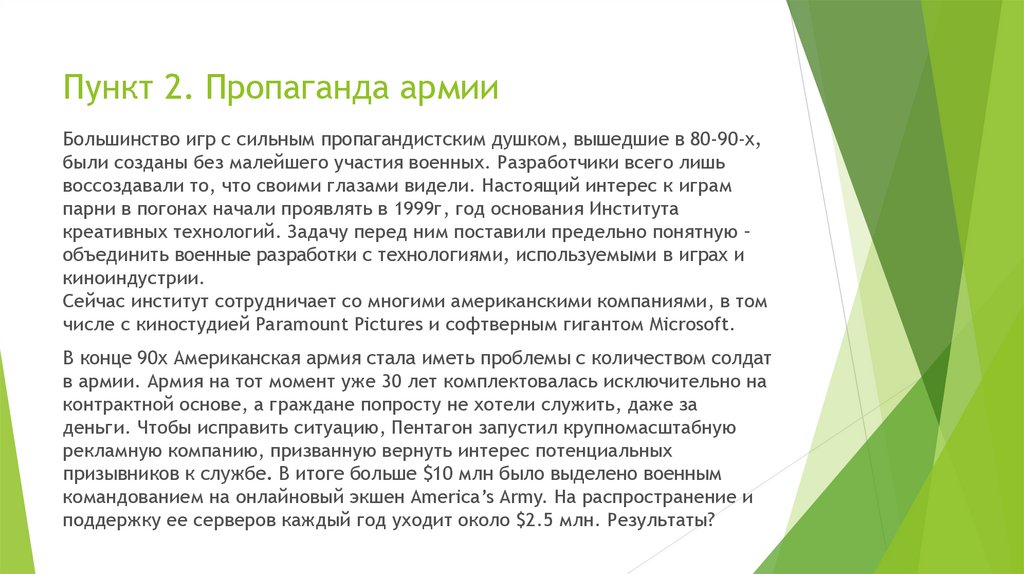 Пункт 2. Пропаганда армииБольшинство игр с сильным пропагандистским душком, вышедшие в 80-90-х,